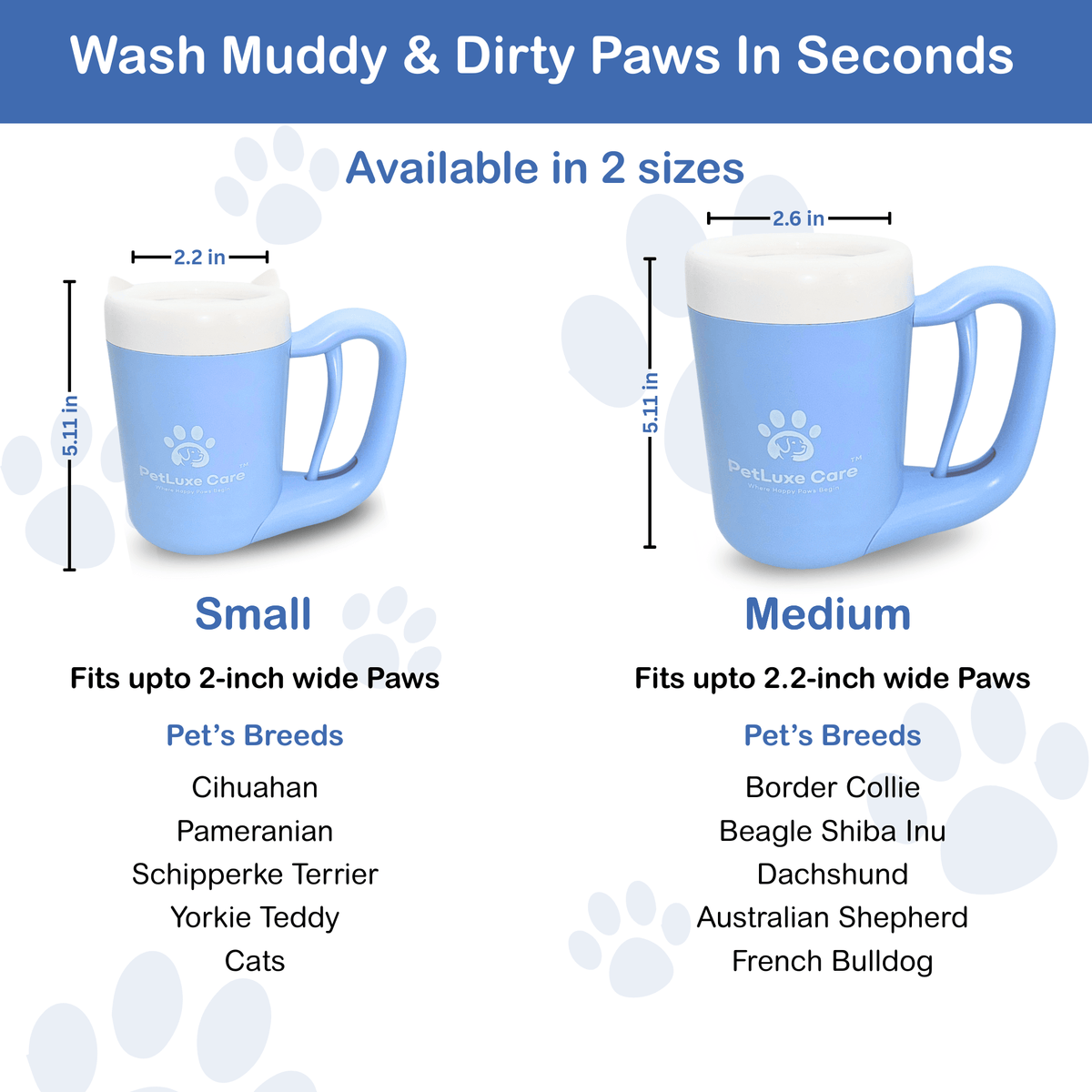 Sized perfectly for small and medium dogs, our washer provides a snug, effective clean without discomfort. Made with pet-safe, BPA-free, food-grade silicone, the soft bristles are ideal even for sensitive or dry paws—keeping them fresh and irritation-free after walks, hikes, or rainy days.